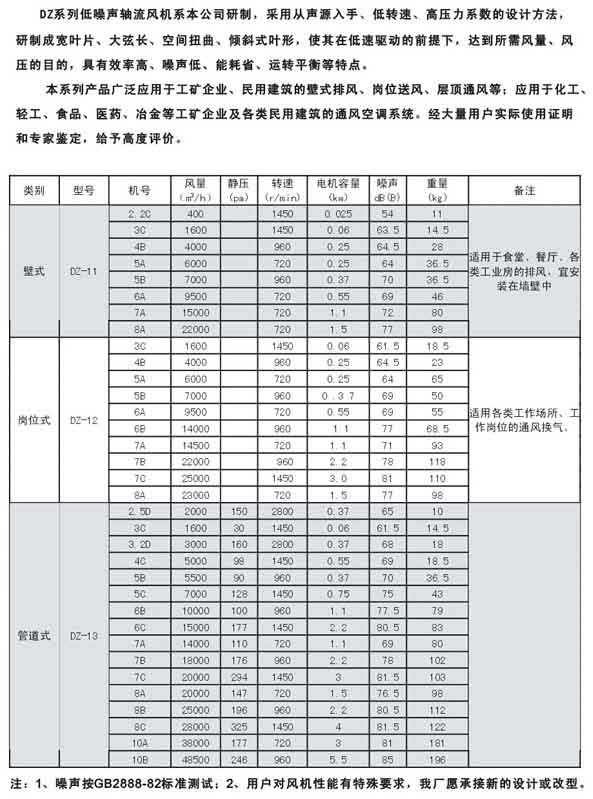 產(chǎn)品名稱:DZ型低噪聲軸流通風(fēng)機(jī)